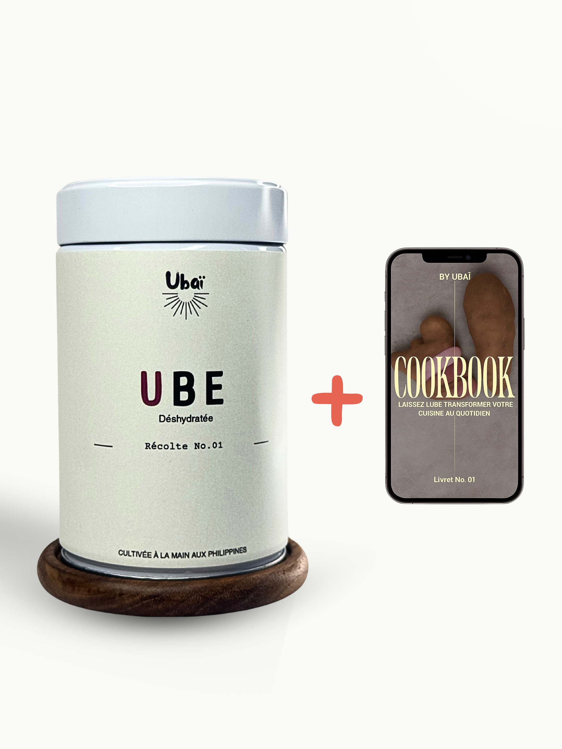Afin de préserver ses nutriments, l’Ube utilisée dans nos récoltes est déshydratée à cru, sans cuisson préalable. L'ube crue est dépourvue de goût et indigeste. Il est donc indispensable de la cuire avant consommation.
